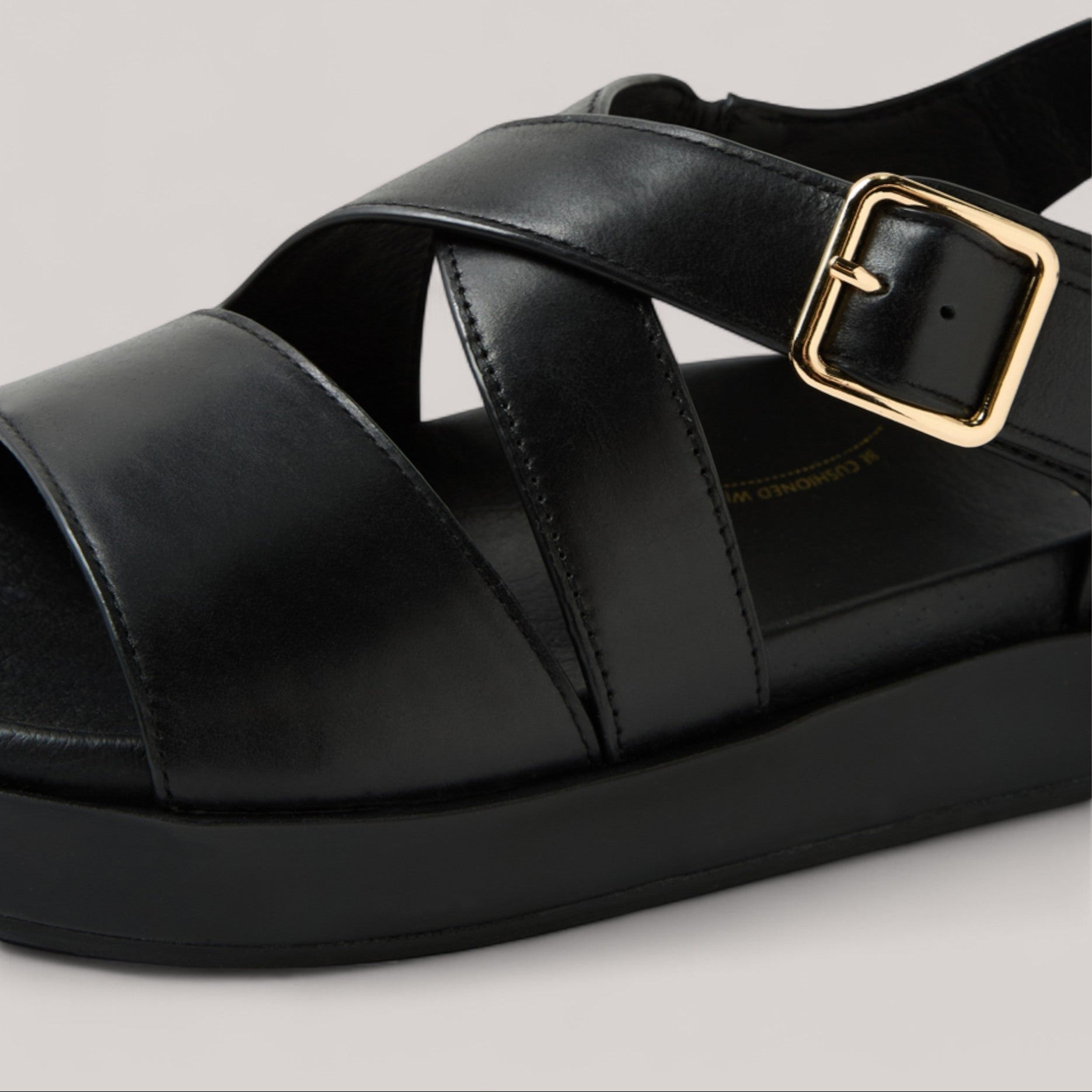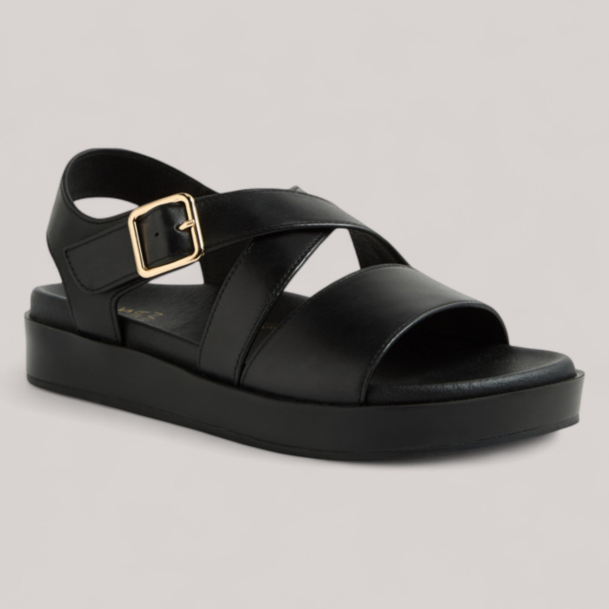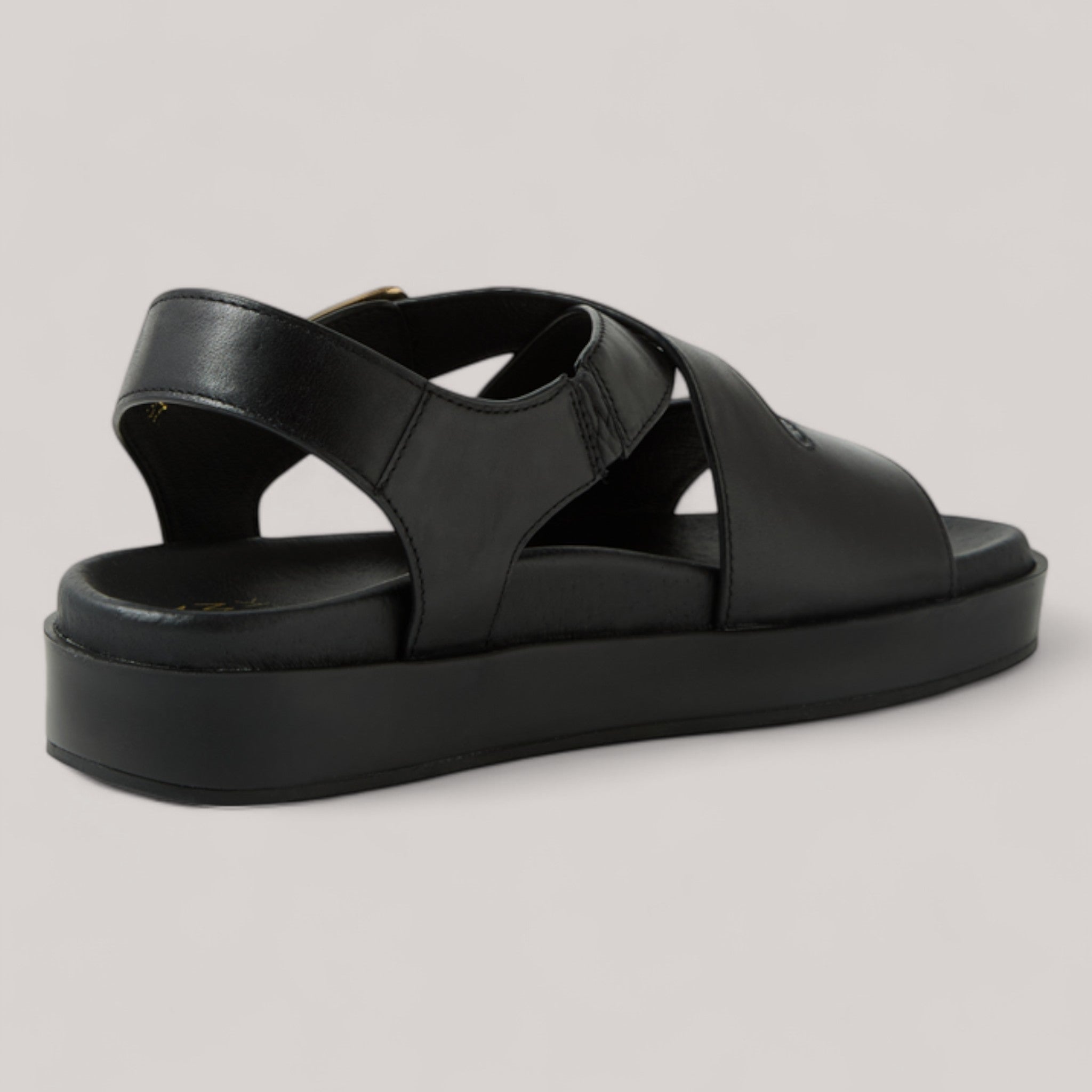 Soft leather linings and a buckled ankle strap offer a secure, breathable fit—ideal for warm-weather wear.