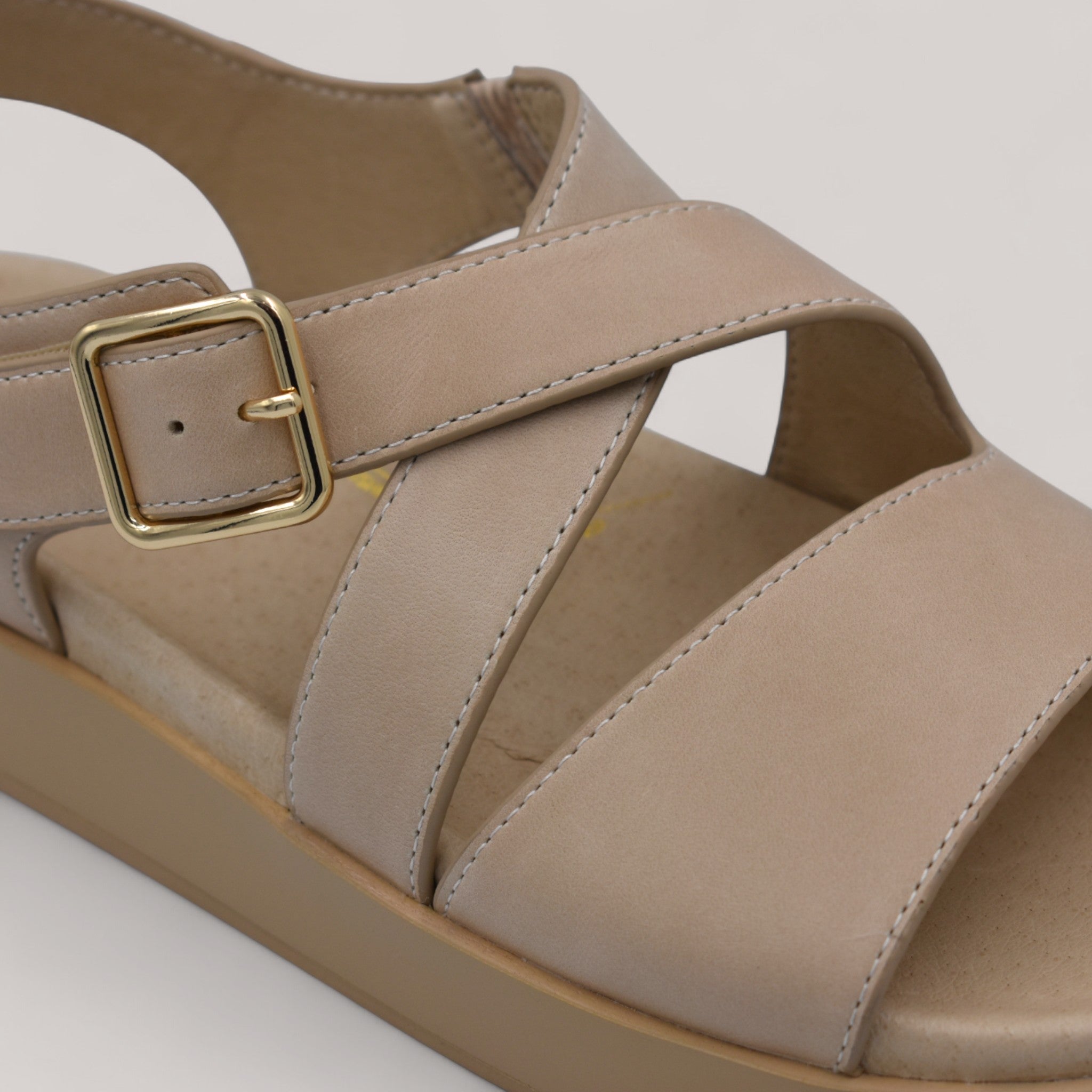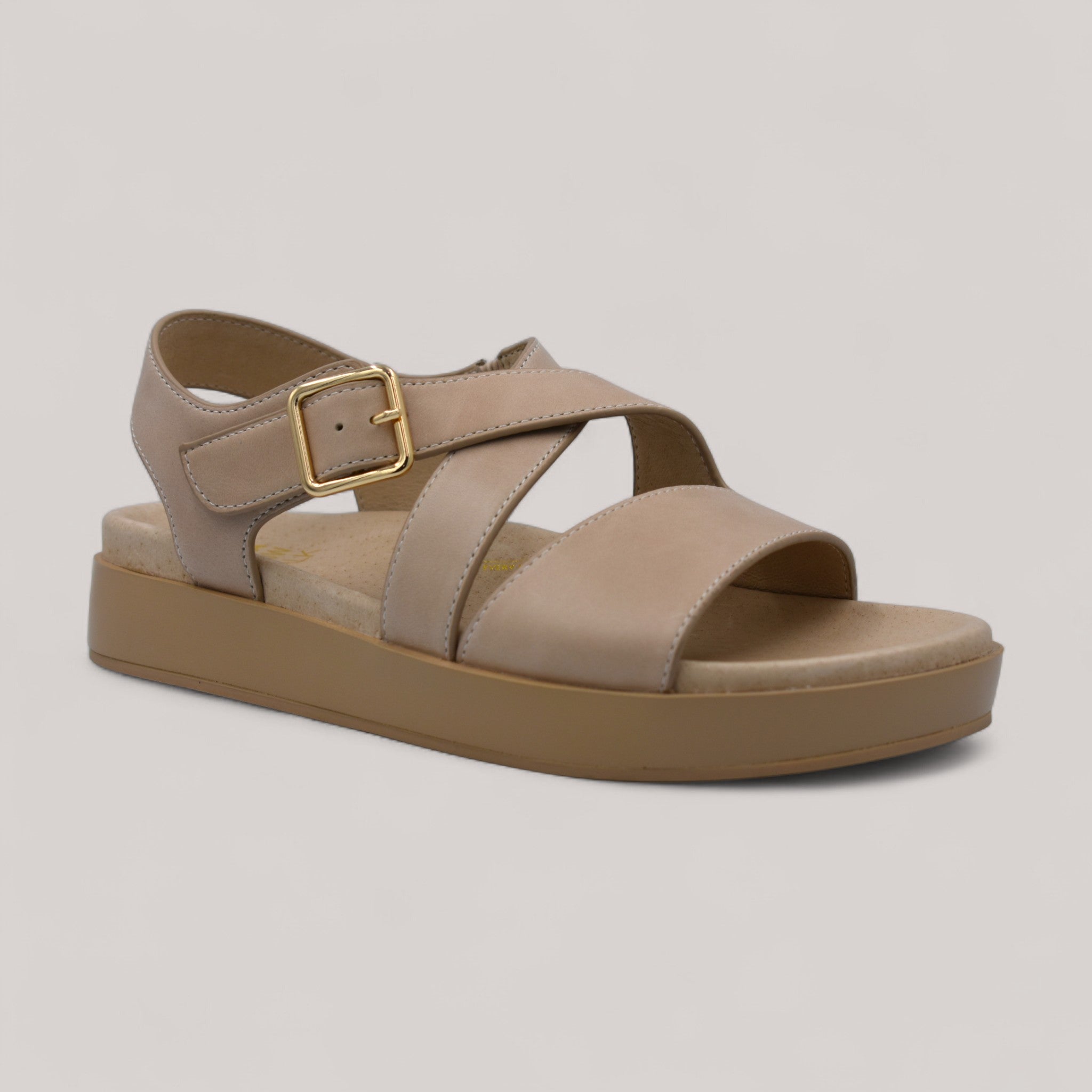 Soft leather linings and a buckled ankle strap offer a secure, breathable fit—ideal for warm-weather wear.