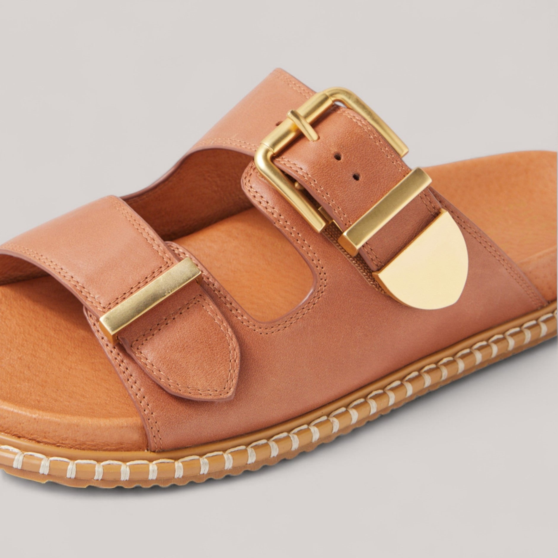 Upgrade your summer comfort with IYAMI by Ziera, a leather slide featuring twin adjustable straps and soft leather linings. The triple-layer Pillow Walk footbed offers cloudlike cushioning with gentle arch support, while the standard W fit suits most feet. Finished with a low 1.9cm heel, it’s a luxurious choice for sunny days.