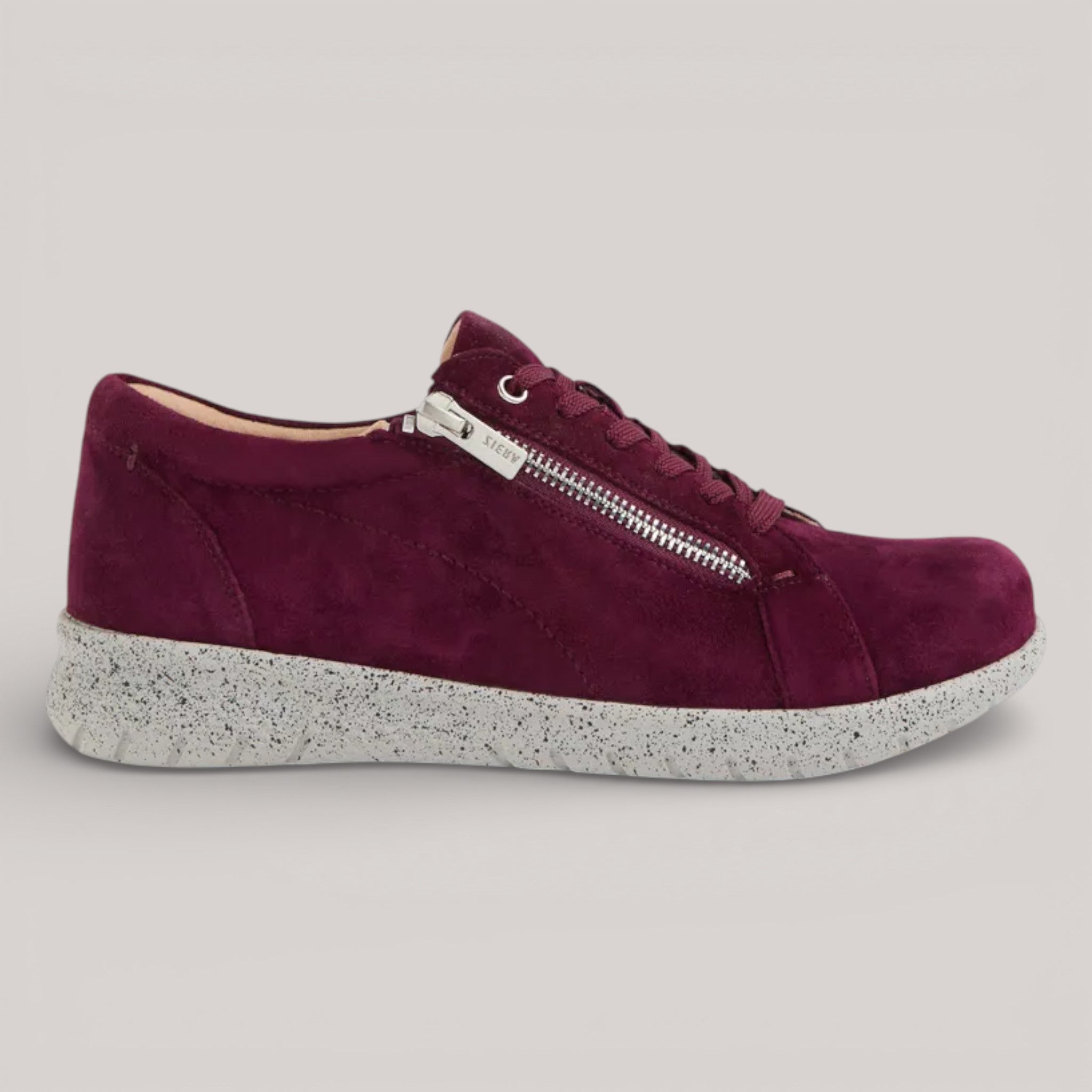 Ziera's Solar slip-on sneakers marry contemporary design with purposeful comfort engineering. The supple leather upper is secured by a discreet side zip for seamless entry, while the anatomically refined footbed delivers robust arch support and generous depth for all-day stability. Built with orthotic compatibility in mind, these sneakers accommodate custom insoles without compromise. A refined choice for those who refuse to sacrifice support for style.